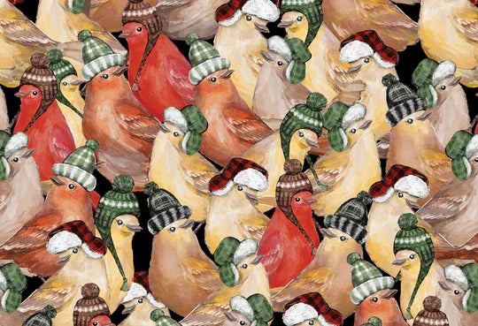 A twist on a traditional rustic sugar shack,  featuring playful birds, sugaring off patchwork, maple syrup motifs, wood grain textures and classic buffalo plaid, this assortment is both cheery and cozy.