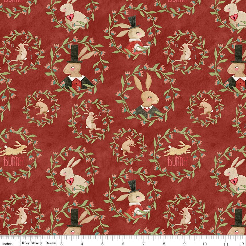 Hop Hop Hooray Quilt Fabric By Teresa Kogut Wreaths - Red