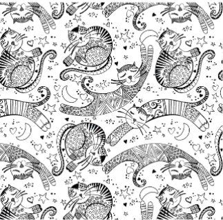 Mysti-Cats Quilt Fabric By Davina Nathan Mysti-Cat - White