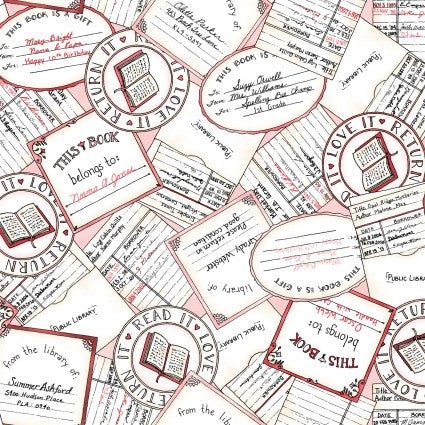 Readerville Quilt Fabric By Kris Lammers Book Labels - Pink