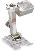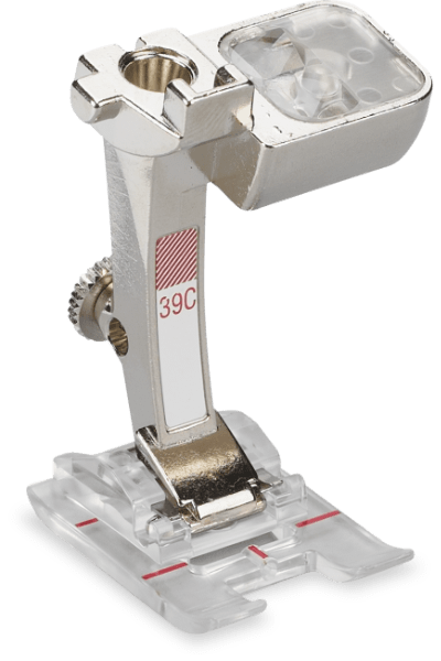 Embroidery Foot with Clear Sole #39C is an extremely versatile tool. This presser foot is outstanding for compact decorative stitch patterns, satin stitching, and appliqué, as well as for sewing off-the-edge scallops.