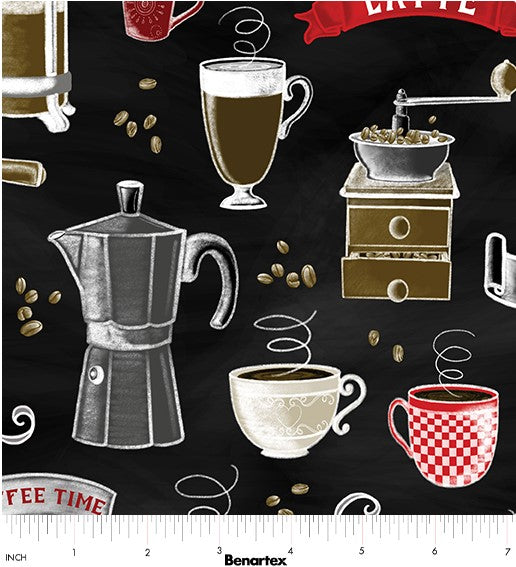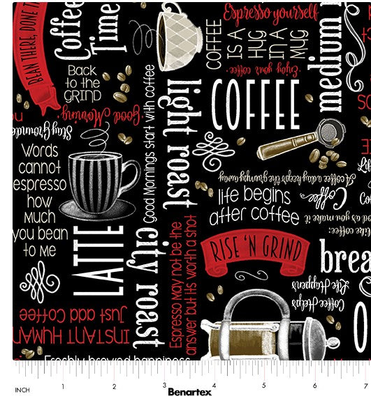 Perfect Brew Quilt Fabric By Andi Metz Rise 'N Grind - Black/Multi