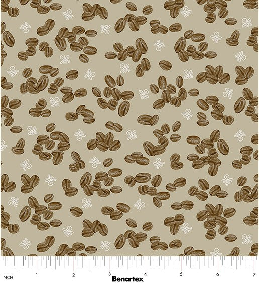Perfect Brew Quilt Fabric By Andi Metz Coffee Beans - Ecru