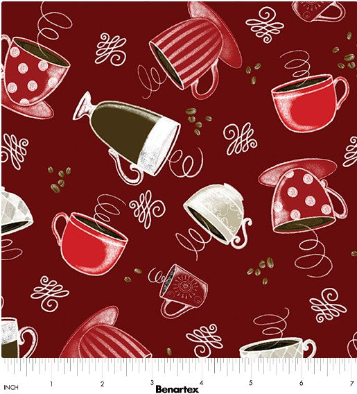 Perfect Brew Quilt Fabric By Andi Metz Cups - Deep Red