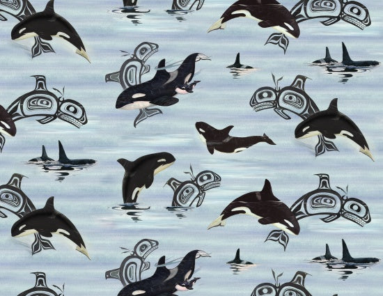 Spirit of Ocra Quilt Fabric by Sue Coleman Orcas - Cool Blue