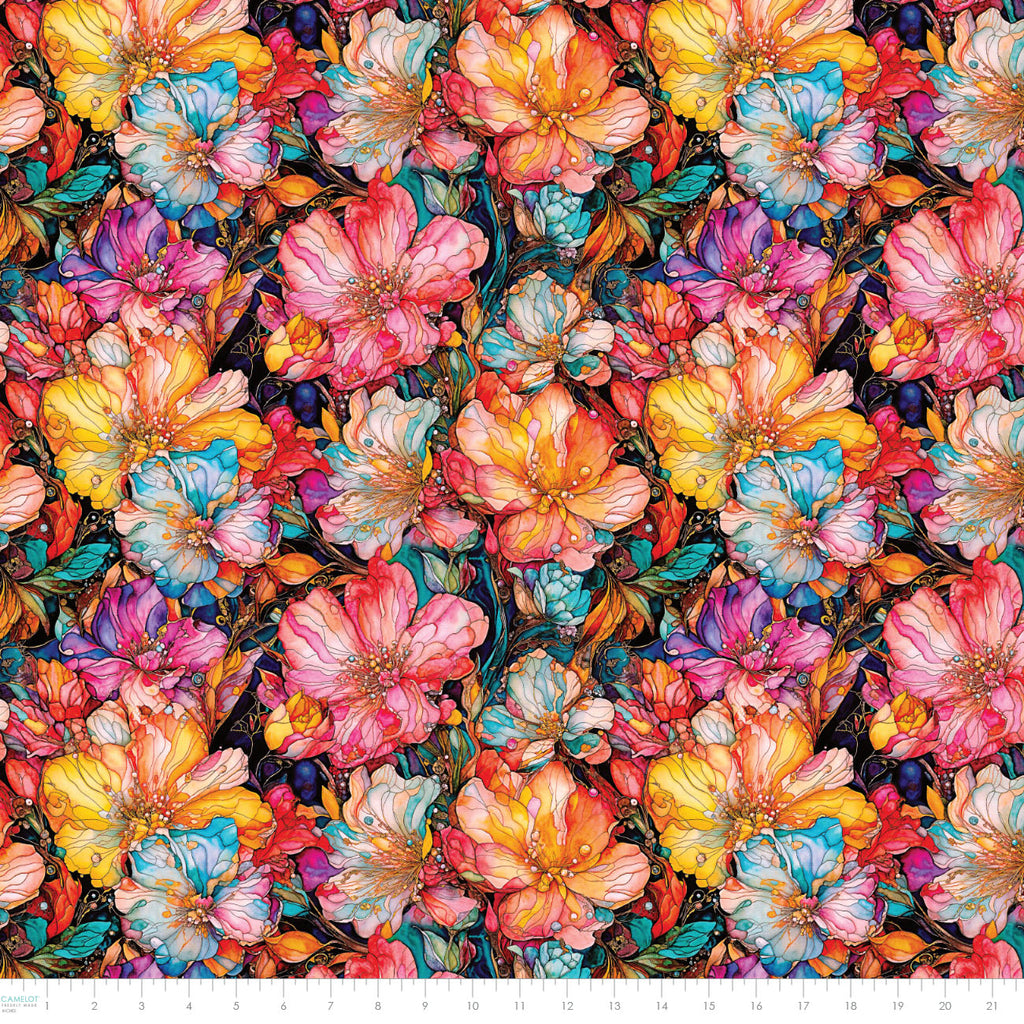 A breathtaking celebration of hummingbird harmony. Lush art nouveau gardens, delicate whispering wings, radiant meadows, and intricate petal mosaics in a myriad of colours create a feast for the eyes. Cut in 1/4 yard increments continuously from the bolt. Please specify if you require 1/4 yard as a fat quarter.