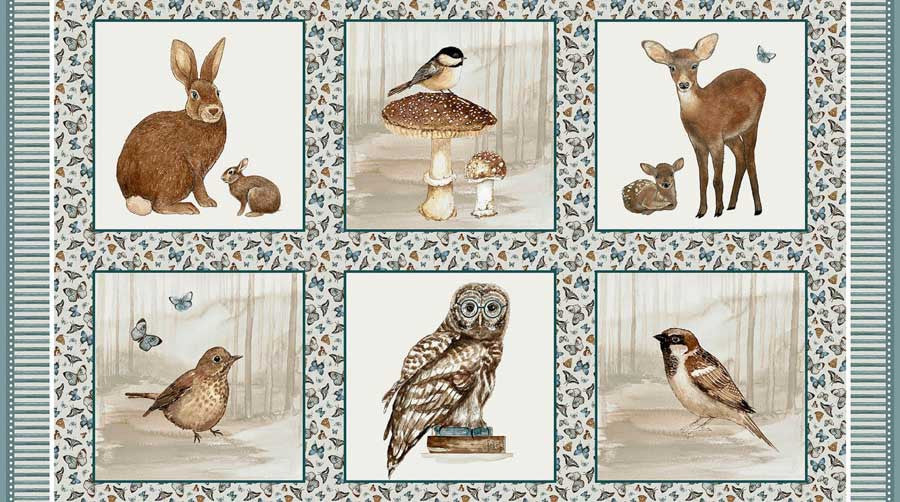 Whimsical Woods Quilt Fabric by Dawn Rosengren 6 Block Panel