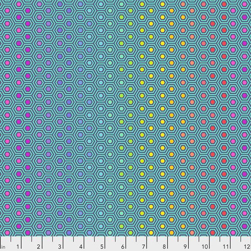 True Colors Quilt Fabric By Tula Pink Hexy Rainbow - Peacock