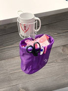 The handy removable bag keeps your work area free of scraps and clippings. The silicone rubber sleeved clamp installs easily and protects all work surfaces – including wood. The rust-proof metal frame holds coffee mugs, cups, bottles and even spray starch – which means you need one for your sewing area AND one for your ironing station!