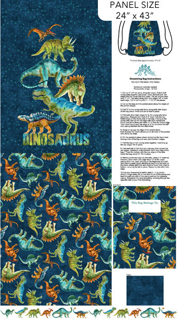 Dino Roar Quilt Fabric By Brett Blumenthal Canvas Dino Bag Panel 24" X 43" - Navy Multi