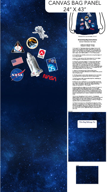 Space Odyssey Quilt Fabric By Deborah Edwards Canvas Nasa Bag Panel 24" X 43" - Dark Blue