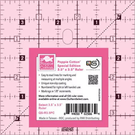 Quilter's Select Pink Poppie Cotton Non-Slip Ruler 3-1/2in x 3-1/2in