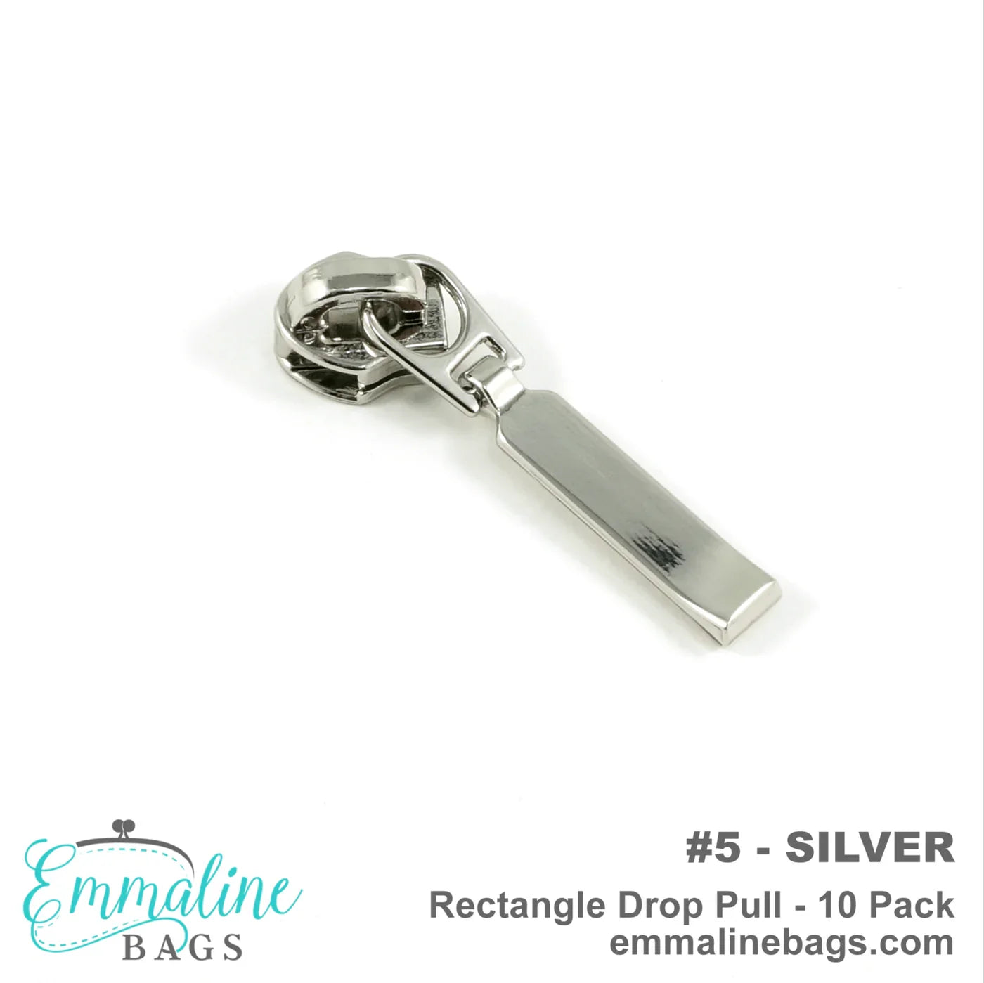 Emmaline Bags Zipper Sliders With Pulls Size #5 Trapezoid Drop Pull - Silver