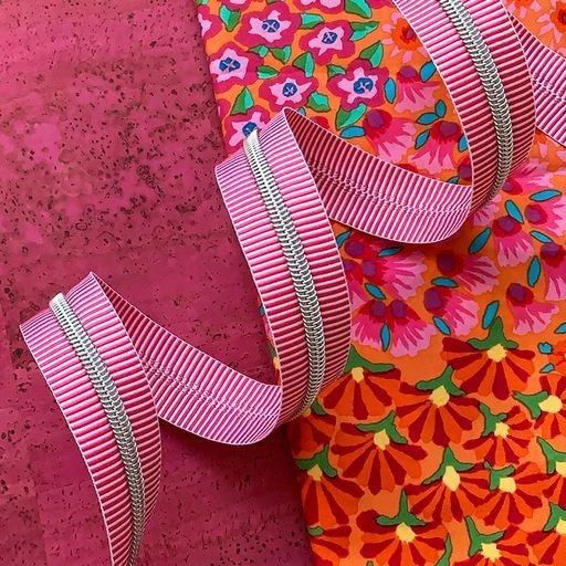 Pink Stripe Zipper Tape Nickel Teeth By Sassafras Lane Designs