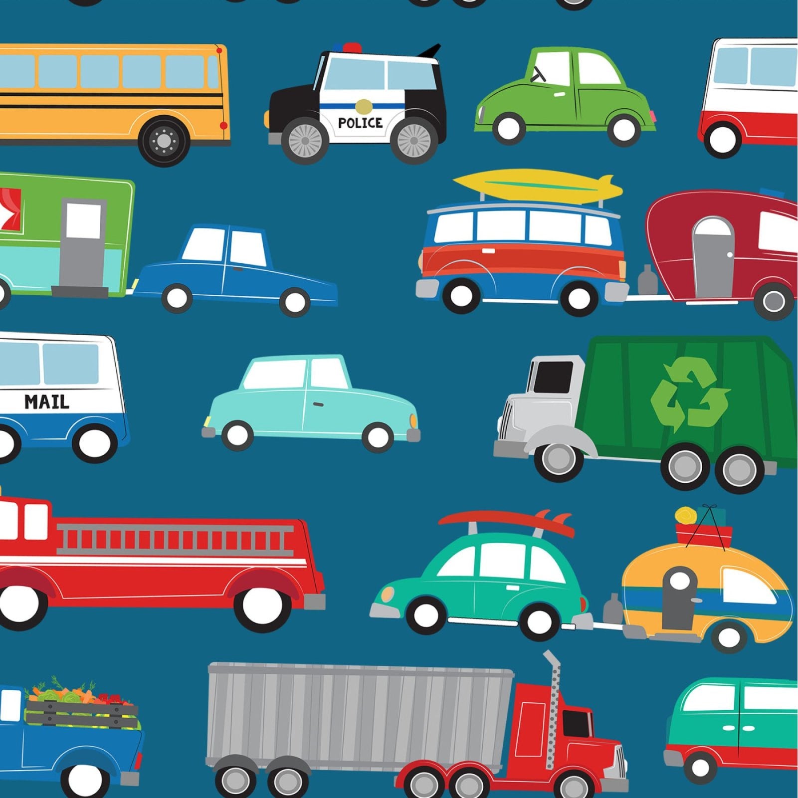 Beep Beep! Quilt Fabric By Michael Zindell Vehicles - Dark Sky