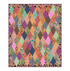 The glamorous print styles of the Shooting Star collection are the perfect place to let the fabric do all the work. Taking a nod from the diamond shape in the Socialite print, this quilt is dripping in diamonds.  The clever cutting on the Socialite print gives the quilt the appearance of multiples sizes in diamonds but this is a one-patch pattern, perfectly scaled to the repeat sizes. Pattern includes acrylic templates for cutting.